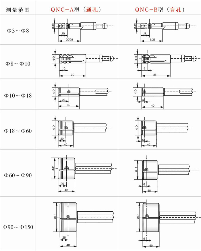 產(chǎn)品名稱:標(biāo)準(zhǔn)氣動測量頭尺寸